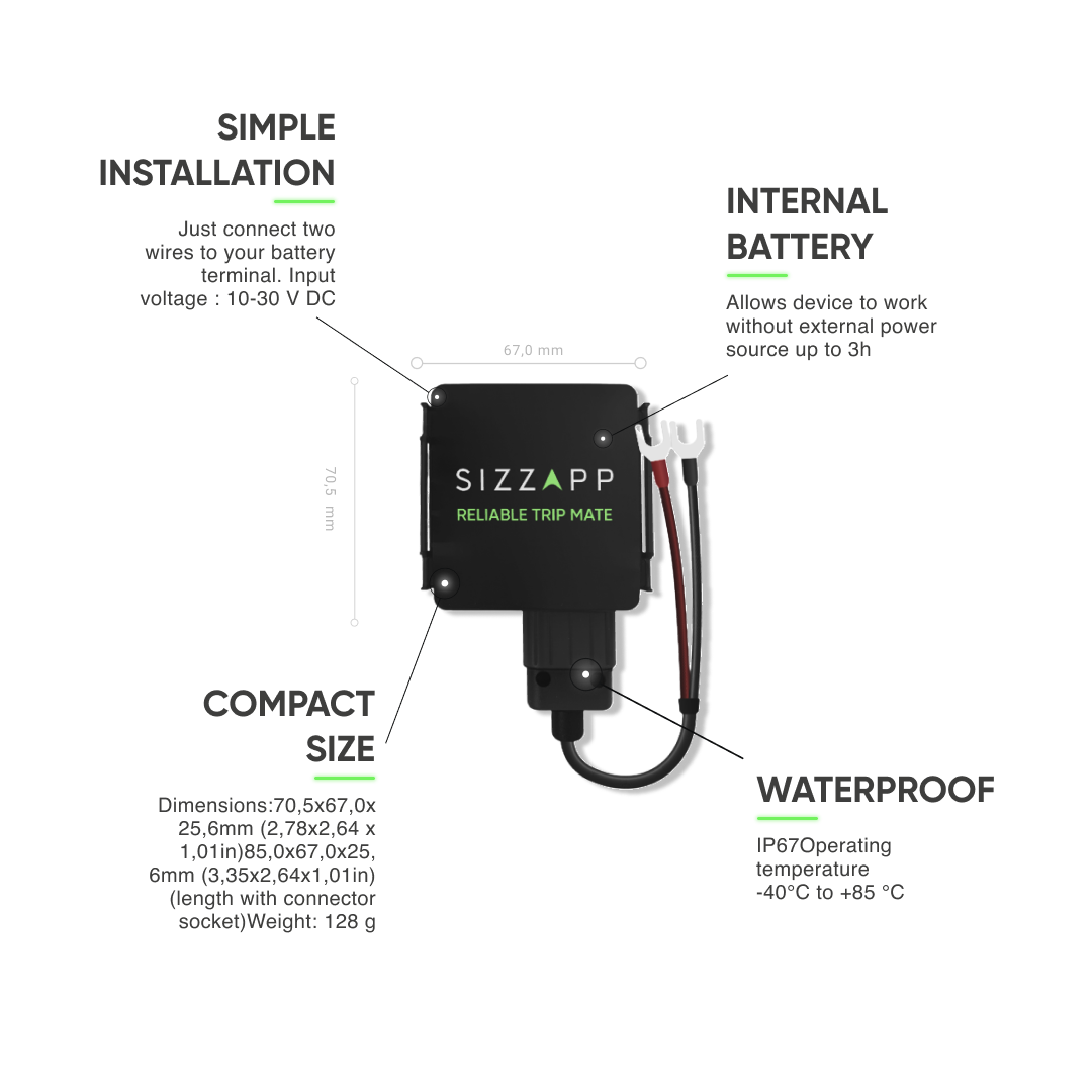 Sizzapp Max ist ein revolutionärer GPS-Tracker für Boote, Motorräder, Autos etc. Er wird an die Batterie Ihres Fahrzeugs angeschlossen und verbindet sich dank der integrierten SIM-Karte mit einem 4G-Netzwerk - und dies funktioniert weltweit!